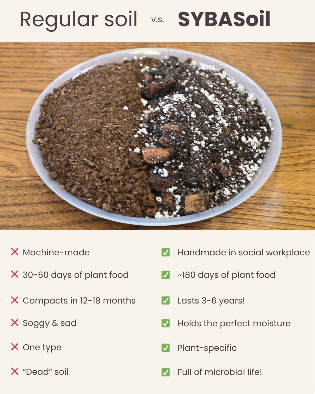 SYBASoil is handcrafted for your plant’s exact needs, keeping roots healthy, pests away, and your watering stress-free.